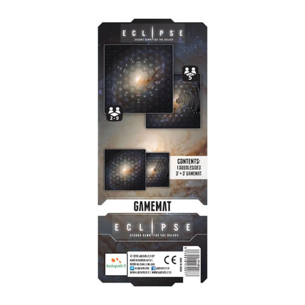 Eclipse – 2nd Dawn: Playmat is a double-sided neoprene playmat for Eclipse – 2nd Dawn for the Galaxy or the original Eclipse boardgame. One side has a regular playing area for 2รขโฌโ9 players, and the other side has a specially designed playing area for a more balanced 5-player game. Also includes a handy carrying bag for the mat.