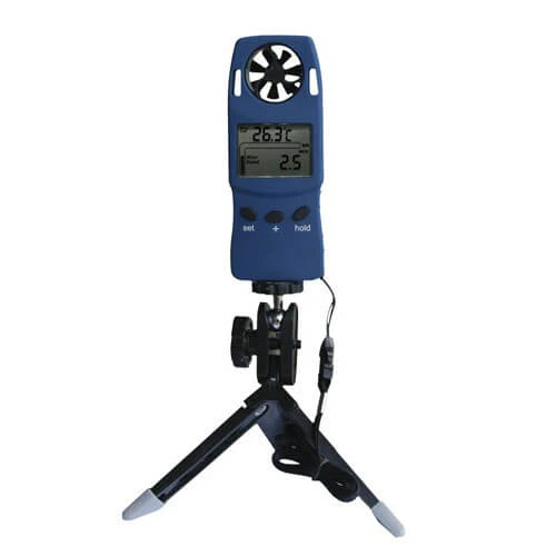 Provides wind speed, wind chill, temperature, barometric, and altitude information for any outdoor activity. The main display can be toggled between wind speed or altitude, with the sub-display showing either temperature/wind chill, or barometric pressure and temperature. The feature-packed device is small enough to fit in your pocket and can be used be used hands-free with the included mini tripod.