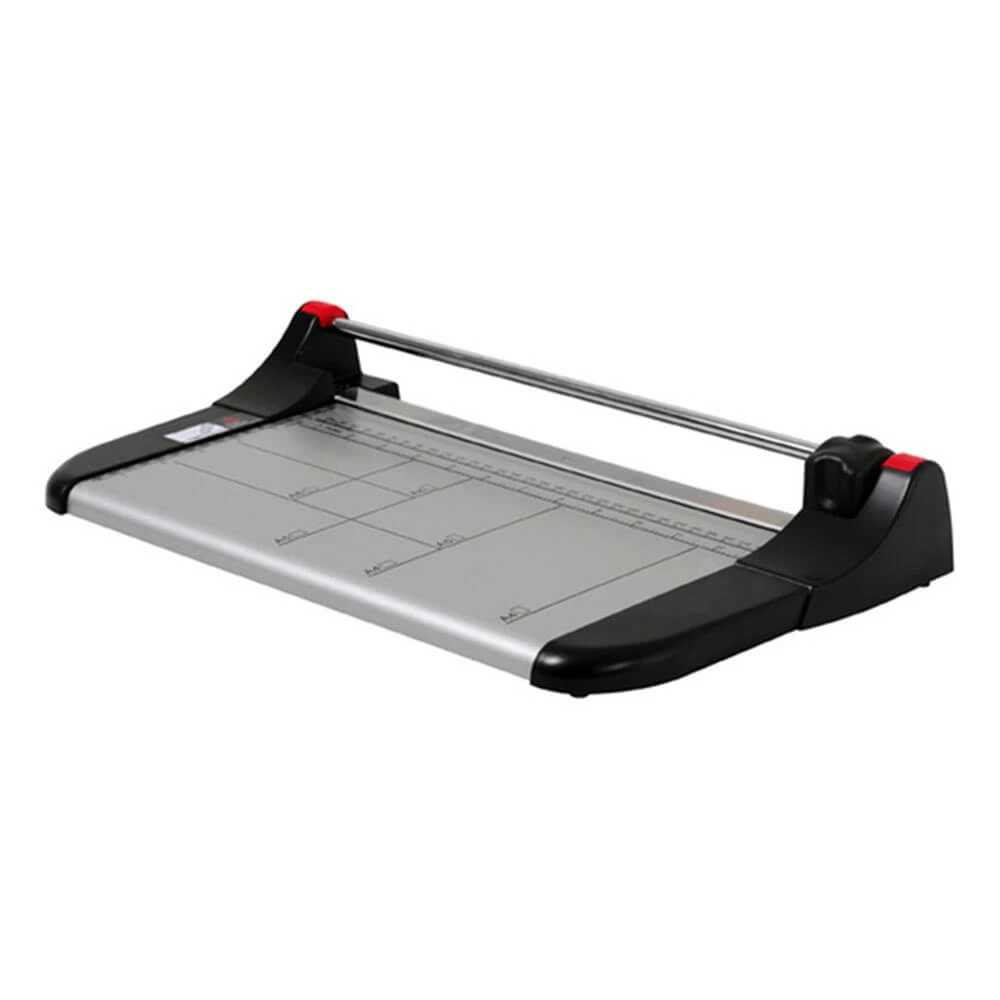 Solid rotary trimmers ideal for office or school usage. Designed for safety and accuracy, using a smooth precision rotary trimmer blade, for cutting paper, photos and laminated documents.