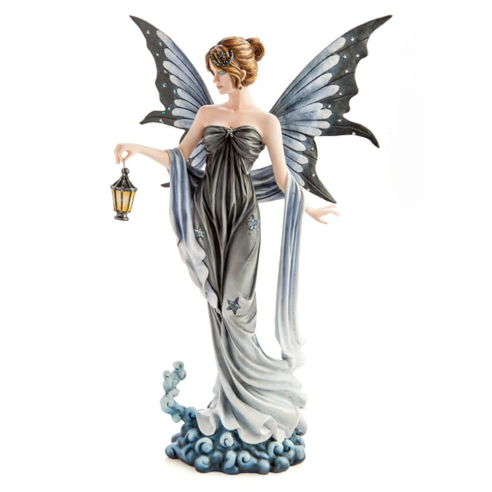 - Figurine of an elegant star fairy standing among the clouds, holding a golden lantern