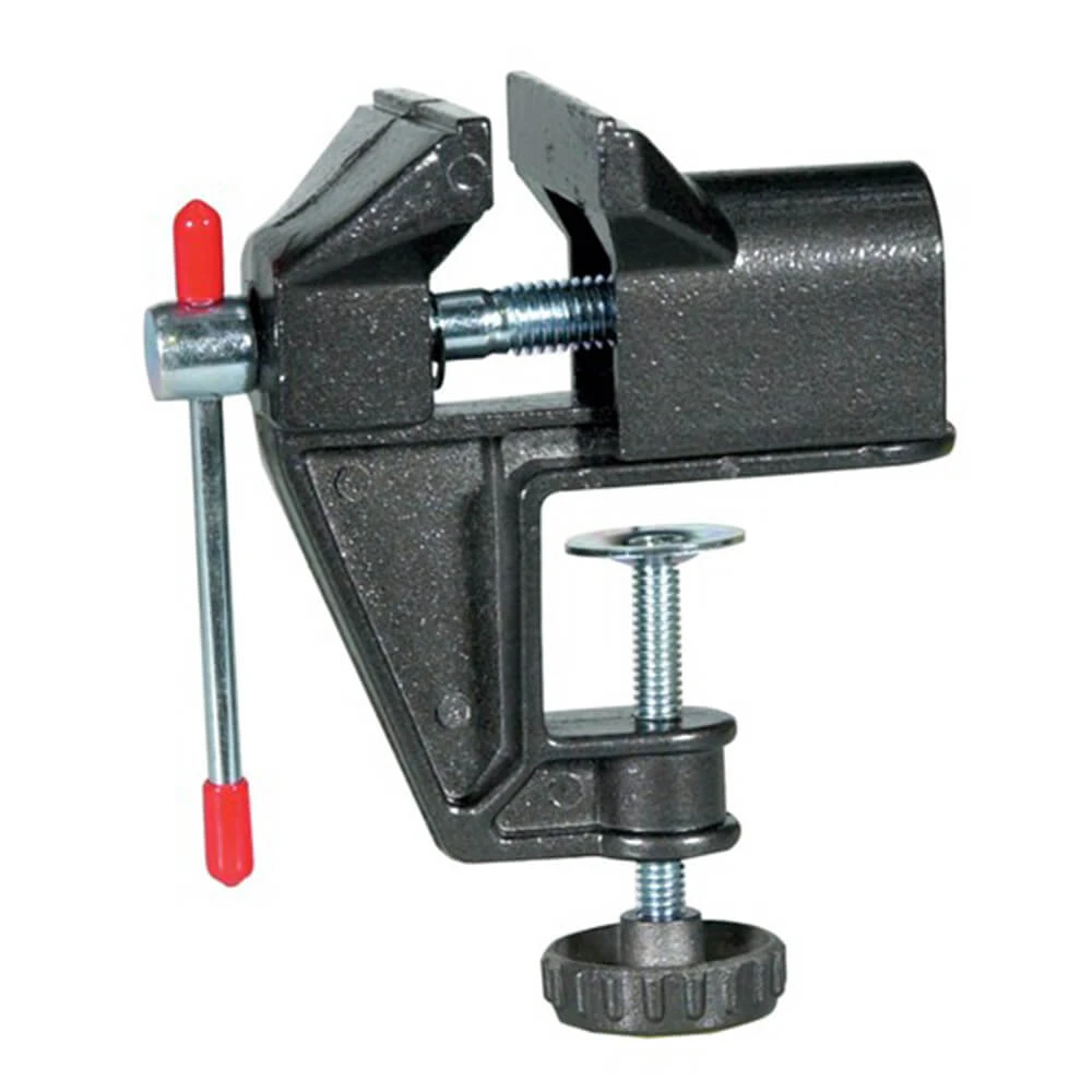This sturdy lightweight vice will clamp to surfaces up to 1 thick and hold material up to 2 thick. This handytool is ideal for hobby work or as a light duty workshop bench vice.