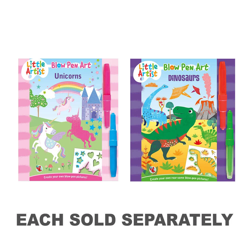 Get ready for a magical Unicorn creative adventure inside this fun book. With 2 blow pens and stencils to create Dinosaur pictures with. Plus colouring and drawing activities inside.