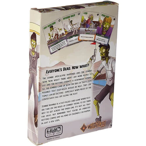 Zombie Shamble is a fast-paced card game where players take on the roles of zombies trying to do their best to get across the finish line. It’s not all that far away, but remember that you’re an animated rotting corpse and all kind of craziness can happen in just a few steps.